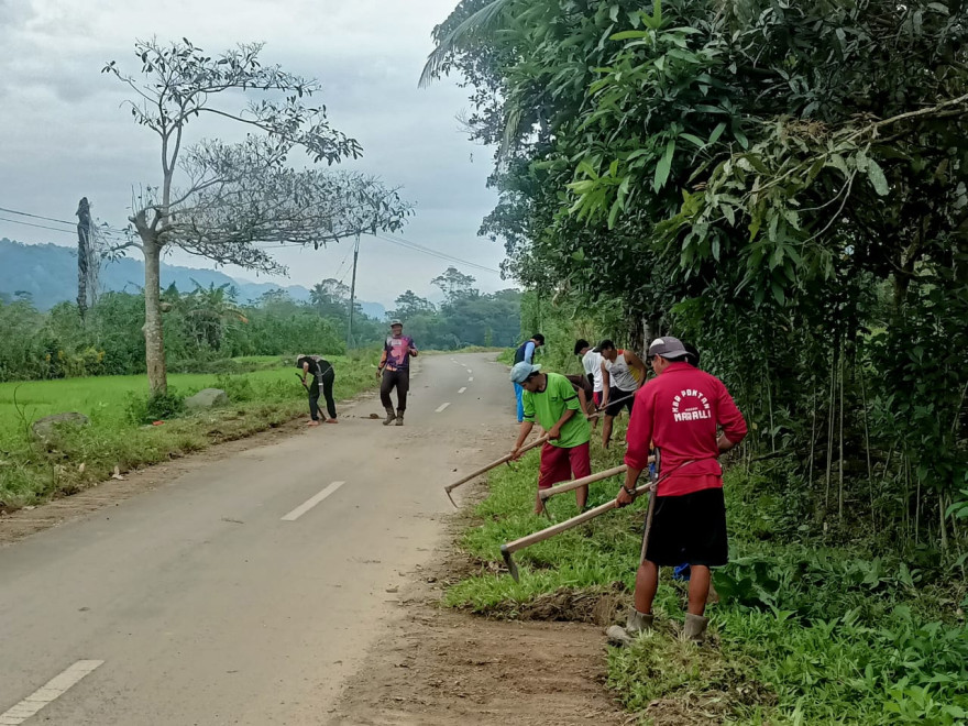 Gotong royong difokuskan pada pembersihan jalan desa yang mulai ditumbuhi rerumputan liar. Dengan semangat kebersamaan, mahasiswa dan warga bahu-membahu membersihkan rumput di sepanjang jalan menggunakan peralatan sederhana. Kegiatan ini tidak hanya membuat jalan menjadi lebih bersih dan nyaman dilalui, tetapi juga memberikan contoh nyata pentingnya menjaga lingkungan agar tetap rapi dan sehat.